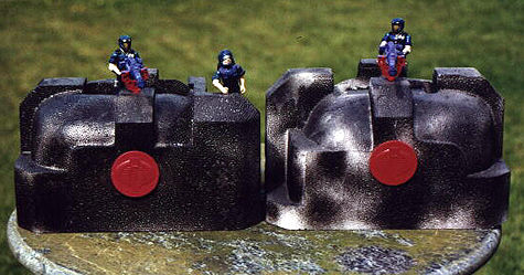 Just 2 styrofoam structures that contained my CD-player. Added 2 hubcaps from the STUN and 2 weapons from the Dreadnock cycles. Oh, and cut holes in the back.