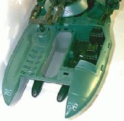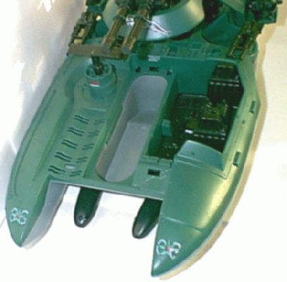 Notes: First off I had to change the hideous colors of the original Shark 9000, then I had to do away with that awful main weapon system that shot water. Then I removed the mine launcher, torpedo bay, and two small mg's and the missile launcher. After that it was just a matter of picking good colors that made sense for the military and painting and assembling the Blacksharc. The Decals were made from a HP printer.