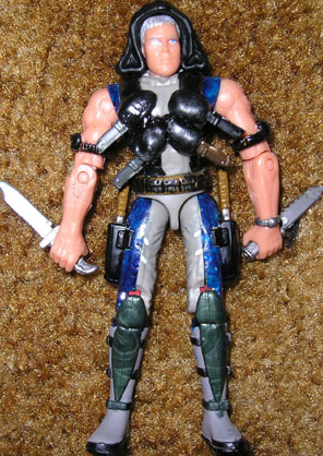 I've always had a facination with knife throwing and I thought it would be cool to make a Cobra figure that specializes in it. The sheaths on his chest were made from puddy by my friend Firefly, who has also submitted some cool stuff to Joecustoms.