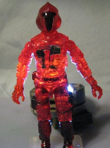In 2006, I took a couple of the internet exclusive transparent red Inferno BATs and, with a few cast parts, turned them into Fire A.N.T.S. (Android Napalm Transport Systems). Basically first wave attackers made for finding holes in the enemy line. When nova showed off his clear BATs I knew I had to get one to serve as their leader. The hardest part was painting a transparent figure with transparent paint, but I really wanted to be able to see through the whole figure. Despite what you see, each color took about 5 layers to get that effect.
