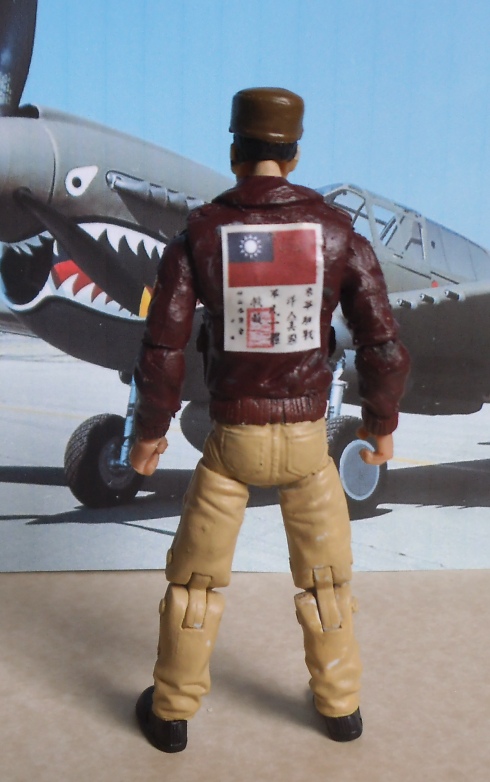 published diary of one of the pilots and General Claire Lee Chennault's account of the China/Burma/India campaign in the air. I made a Stikfas figure many years ago, but have always wanted to make a 1:18 version. There was no bomber jacket on an existing figure that I liked, so I sculpted it. I used the patch for the Second Pursuit Squadron 'The Panda Bears' as it was the one that printed out best. The patch on the left sleeve is the CBI (China/Burma/India) patch. I went with the kepi type cap on the Zartan head as it is the type of hat seen in many of the photos of the Tigers, rather than an officers peaked cap. I got the image of the blood chit off the net.