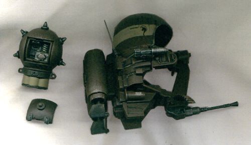 I can't recall how I came up with the paint scheme but it's appealing, right? I painted the otherwise semi-translucent canopy of the 98' Flight Pod because I wanted this incarnation to be more heavily armored. Probably an urban pacification flight pod. I wanted to add more than just one antenna but by the time I had finished painting I had expended all my creative energy. The dome wasn't always going to be painted, but I couldn't get rid of some sticker residue and after I sanded it and polished it still wasn't clear enough, and so what you see was born from that.