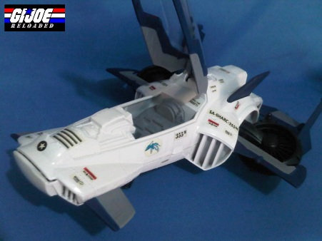 When I saw this (Iron Man Assault Jet) at 50% off, I quickly grabbed one. I wanted to custom paint a new vehicle and it was really cool I was able to get this one. From the start I really wanted to make this a modern version of SHARC and call it Hammerhead SHARC. I used glossy white acrylic spray paint over the body and I hand painted the rest of the parts. This vehicle was included in G.I. Joe Reloaded project. Hope you like it!