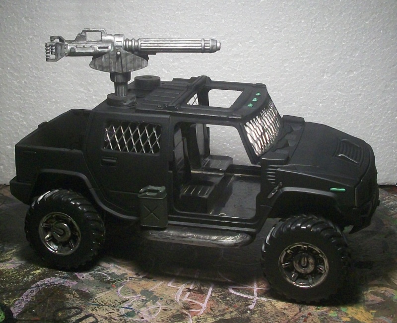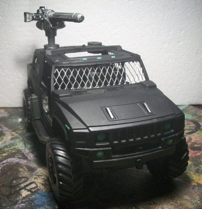 I scavenged and assembled this from scrap parts. This is the baddest hummer left in the wasteland. A roof top .50 caliber gatling and a stripped down body for speed.