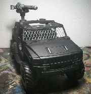 Now being used by the members of NERODIA, it is unknown who built it. Regardless it was built correctly for maximum performance. Tearing through the barrens or deserted cityscape. Set up for night time operations the blacked out hummer has covert green lights.