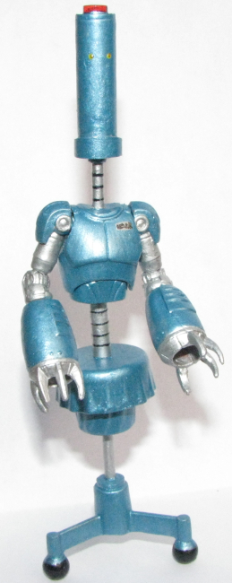 He is armed with guns, blades, torches, and even a gyro copter. He can fly and repair the Venture X-1 aircraft. He only speaks and beeps.