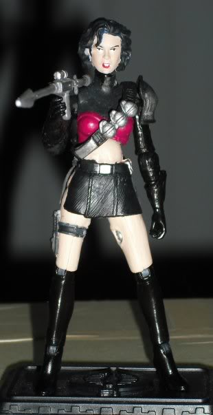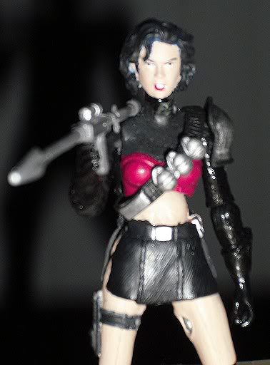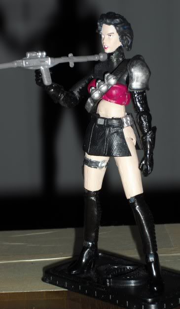 The 'Noks needed more women. Especially on my shelf, until I finished this one it was just my custom Zarana up there. Parts selection aside from the head took me awhile to decide I knew I wanted the bare midriff. I was also torn between using the skirt from the SW figure or using a cloth one. in the end I went with the plastic cause I wasn't thrilled with the way the cloth looked on the figure.