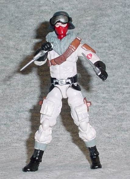 The sai holders on Ice Vipers thighs are interesting in origin. I sorta owe thanks on this one to both Star Wars Geek and Tonphanan. I borrowed the idea of using a Star Wars Massif beast's harness on a Schleich crocodile for my 25th Croc Master from Star Wars Geek. I had to cut off one of the straps to do so, and discovered that the buckle from the removed strap would make a perfect sai holder for Ice Viper. It just happened that Tonphanan had 2 of 'em to trade me!