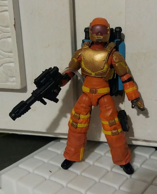 His recent mods to the accelerator pack he wears allow for 3 different types of chemical sprays, the first a flammable gel, second a fire suppressant foam and the third an adhesive concrete. Allowing him to operate in an assault, recovery and defensive capability making him more than a neon colored firebug.