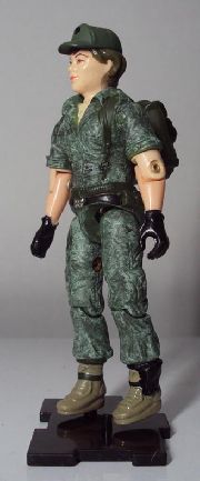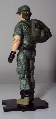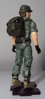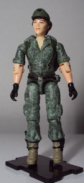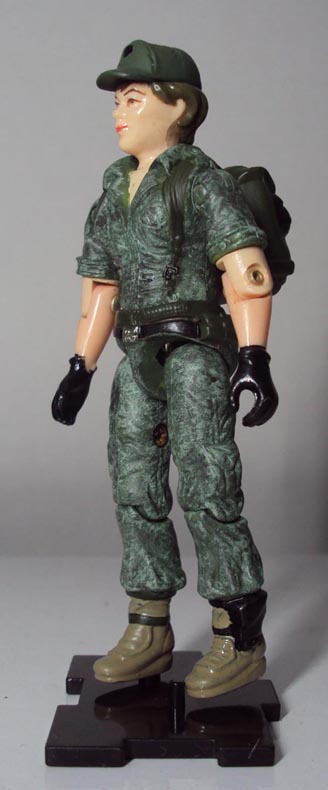 I never liked the light green of her uniform. So I had try to create the new digital camo pattern of US Army and the tan boots. I used matte enamel paint in three tones of green and a fourth tone for details. I kept the cap in a unique tone to use black in a low visibility patch (better than silver...)