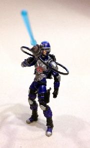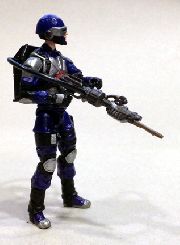NegaWatt, as described by Kilcarr, "The rank and file Cobra Trooper has changed over the years. To better keep up with technology, each Trooper is assigned a helmet with a heads up display that not only records their surroundings, but also monitors their health as well as relays tactical information. It's their best recruiting scheme yet as it really feels like you're inside a video game. Also coming standard issue is a bullet and laser proof vest. Modified from BAT technology, it can stop small arms fire and makes enemy lasers more inaccurate. Finishing off the ensemble is the new and improved Blu-Ray Plasma Rifle. The Cobra Trooper of the future is coiled and ready to strike!"