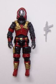 I've previously customized a Nullifier into a Cobra-La figure (as it was originally intended to be before that subteam was cancelled), which created the need for a new pilot for the AGP. I chose a synonymous code name and used mostly BattleForce 2000 parts to make the figure, which I thought was appropriate since the Iron Grenadiers were originally released under the BF2000 label. I see the torso as being something of a compression suit, to help keep the Negator's organs roughly where they're supposed to be when the anti-grav weirdness kicks in. When painting the figure I kept the basic Iron Grenadier colour scheme in mind: black, red and gold.