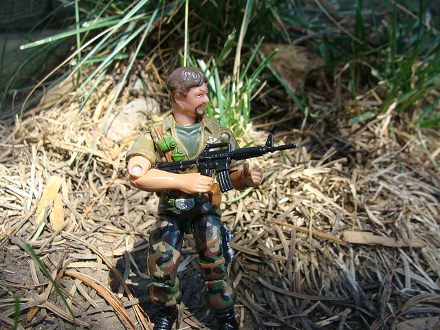 A highly decorated Marine, Old School has served with the Joe team much longer than anyone even knows about. Much of his work has been in the small war torn country of Punta Del Mucosa, where he has spent years training rebel fighters to repel extremists trying to take over the small country loaded with the worlds largest silver deposits.