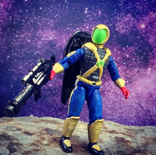 "The Orbital Viper is equipped for lighting fast strikes against GI Joe satellites. Their rocket packs can allow for rapid exit and re-entry to Earth's atmosphere, and the recoilless concussion cannon can blast holes through the strongest Joe Star Fighter armor. Those hapless Joe's will be sucked into the void of space before they even realize what hit 'em."