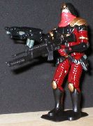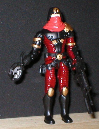 I have an easier task of fitting Overkill in with the Coil rather than with Cobra - and this gave me the perfect opportunity to experiment with colors that would fit for my troopers of the Coil. In the Devil's Due comics, the members of the Coil was colored Black and Red with Gold trims - I'd choose a darker red though to distinguish them from the Iron Grenadiers who are black and gold with red trim. Overkill is the first agent of many to come of my organization of the Coil. I hope you like the colors.