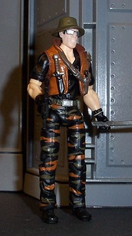 I've never had a lot of love for Pathfinder as he was introduced after I stopped collecting Joes. My little brother had him and I vaguely recall him only because he was released with one of the most ridiculous accessories ever - the giant weedeater. Otherwise, the design was pretty good. So my Jungle Assault Specialist gets a simple machete and an assault rifle. Oh, and I substituted OD green for the turquoise used in his original camouflage pattern. Lately, a lot of my customs have been aimed at being as 'paint-free' as possible, to keep joint rub to a minimum. This is a perfect example of this trend. The only paint on this guy is the head, the vest and the camouflage pattern on his trousers.