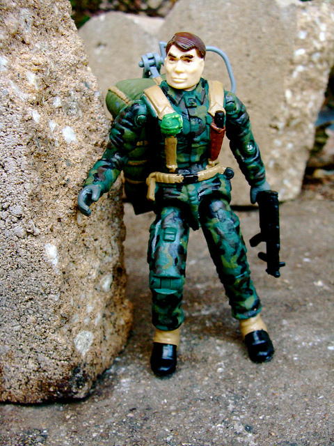 This figure was put together for the basic need to fill a specialized role involved in a series of shots I am working on. I figure someone has to lug all the captured Cobra intel back to base, and the character was built around that.