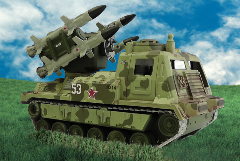 This is a custom Soviet themed Rocket Launching vehicle, or MLRS. MLRS stands for Multi-Launch Rocket System. It has been painted with a realistic paint job inspired by Soviet camo paint schemes, had detailed decals applied, and has had lifelike weathering added. The cabin has room for a crew of two figures, the missile rack can be posed, and the treads flex. It would fit in nicely with an Oktober Guard setup.