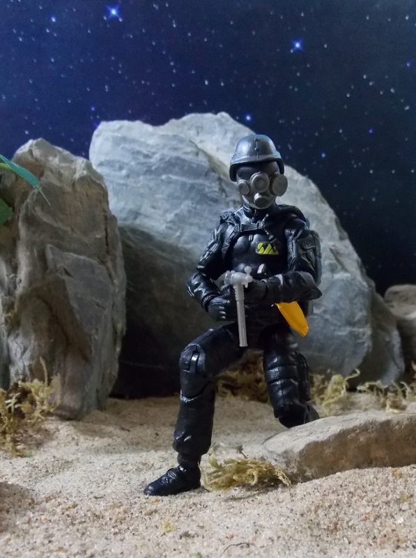 Attack Trooper was part of SAS, Action Force's special ops team. The original's gear is taken from a diver figure. For my custom, I used gear consistent with a SWAT/black ops soldier instead. I believed that it made more sense for the figure. Aside from that, I tried to stick close to the original's look.