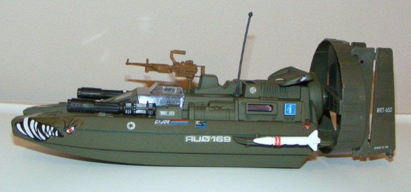 Whether from deep inside the narrow confines and shallow inlets of a backwater swamp, or out on the perilous waves and wide open spaces of the coastal seas, the Seahog TF3AV (Turbofan 3 Attack Vessel) has, time and again, proven itself to be a very capable, deadly craft. Equipped with double "Pulverizer" gatling guns, two Albatross 2 ELASD4 (Extreme Low Altitude Search and Destroy) high yield missiles, FN .50 cal. deck gun, and a top speed that remains classified, it really brings the fight. From General Hawk's file: "The Seahog is destined to remain an indispensable asset to the G.I. Joe team for a long while, and for a few good reasons: It packs the punch of the Whale; is less than a third of the size; and is a fraction of the cost to operate."