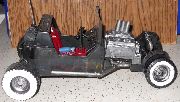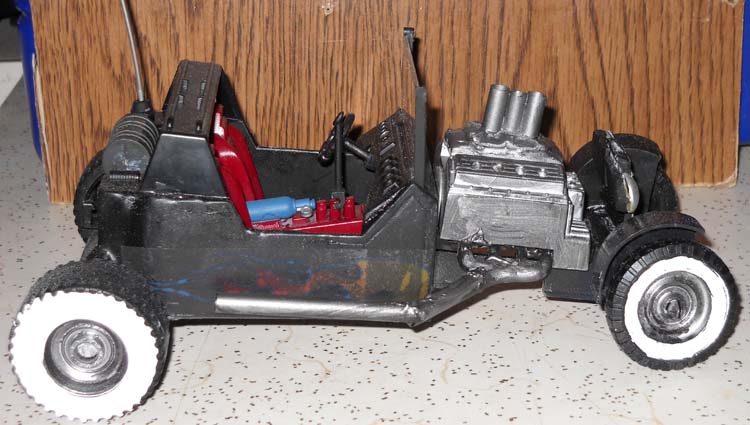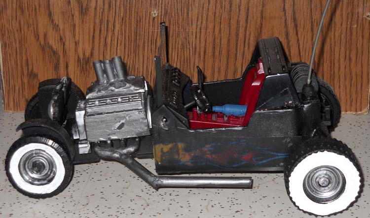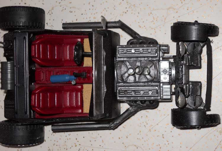 I had an extra Thunder Machine body and a broken interior. I wanted to use them and after my friend told me about his brother-in-law building a real T-Bucket, I knew how to use the parts. I searched on line for images of T-Buckets in order to see how it should look. Then I pulled out all of the spare parts from my junk box and began to put it together.