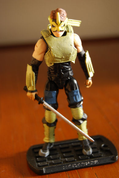 Lately I've been making a lot of ninjas, and I decided to give myself a challenge and make T'Jbang, one of the uglier ninjas from Ninja Force, into a cool, badass mo-fo. I think I came close to pulling it off.