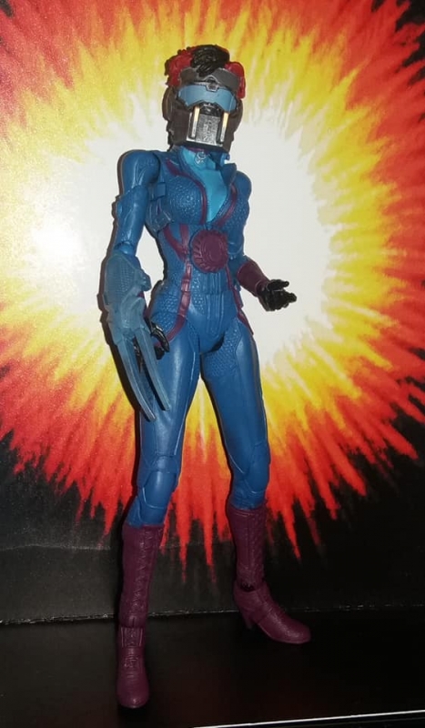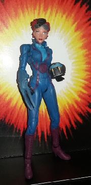 Body is a Play Arts Kai Arkham Asylum Catwoman with a 1/6 wrist joint to replace the broken elbow, part of a jungle Snake Eyes grenade for the chest valve, a mego scale Jubilee head, mask made from a Storm Shadow hand claw with the middle claw and handle trimmed off and attached to a frontal assault Duke mask.