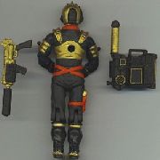I was never happy with the colors Hasbro gave Voltar (purple gold? Uggh!) so I changed them to match those more typical of Destro's forces. Also dumped the stupid vulture. Overall the figure didn't come out as good as I'd hoped, largely because he'd been repainted before in enamels and needed to be stripped down. Still, I'm happy with the results.