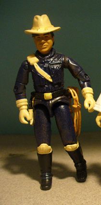 Wong appeared in one episode of the Sunbow run, wearing a peculiar mix of what looked like a dress uniform with cowboy accoutrements. I did away with the dressier attire and went instead with more functional fatigues. The Wild Bill "cowboy" hat was a given. The rather unattractive facial features of the Cross Country head matched those of Wong nicely. The Wild Bill v1 and Cross Country heads were two of the most freakishly oversized of the entire ARAH run, so they fit together perfectly.