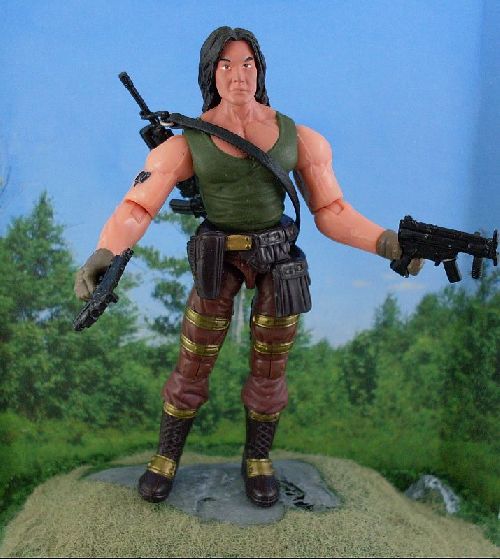 Design Notes: It's worth noting I didn't original set out to make War Wolf; I was just swapping parts around and he sort of came together in front of me. Originally he was to have a Golden Compass Daniel Craig head (which fit perfectly) but I later opted for the Prince Caspian head, which looked good, but suffered from a too-wide neckhole (easily fixed with hot glue). The rest just came along, including the idea of making his ambidextrous and wielding dual MP5s. Overall he came out pretty well, I think.