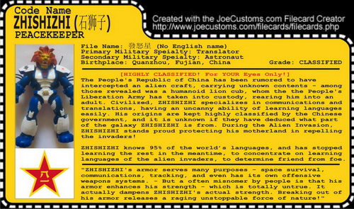 My 100TH submission to the JoeCustoms figure gallery is a MAJOR update to one of my favorite customs, Zhishizhi, previously entered to the Alien Invasion GP.