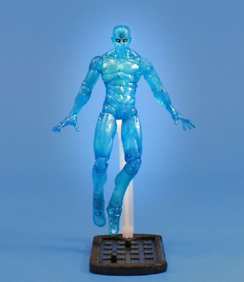 As soon as I saw the translucency of Iceman, I knew a bit of dark blue transparent paint would be just enough to shift his coloring to be passable as Dr. Manhattan. I also attempted to "engrave" the hydrogen symbol into his forehead, and fill it in with a black wash, which I feel was moderately successful.