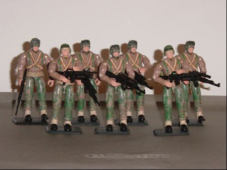 I got a trade for 30 Big Bens and decided to make him the basis of my greenshirts. He is good for this because collectors probably have so many extras of this guy just to get the Viper he comes with, so you can pick him up really reasonable. When in search of a head I noticed that the Frostbite (another one of those extra figs that come with a Viper) colors matched up perfectly (especially the skin tone) so it was a done deal. For accessories I just took what I had multiples of and you know how easy that is seeing as how much Hasbro loves to reuse accessories. You can't see it but I gave him Darts backpact and it goes with him really well, I also have a million of those laying around. Nothing better than a super easy to make greenshirt with NO paint required. I know its an LBC but isn't that what Greenshirts are supposed to be.