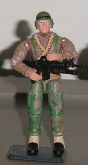I got a trade for 30 Big Bens and decided to make him the basis of my greenshirts. He is good for this because collectors probably have so many extras of this guy just to get the Viper he comes with, so you can pick him up really reasonable. When in search of a head I noticed that the Duke colors matched up perfectly (especially the skin tone) so it was a done deal. For accessories I just took what I had multiples of and you know how easy that is seeing as how much Hasbro loves to reuse accessories. You can't see it but I gave him Darts backpact and it goes with him really well. Nothing better than a super easy to make greenshirt with NO paint required. I know its an LBC but isn't that what Greenshirts are supposed to be.