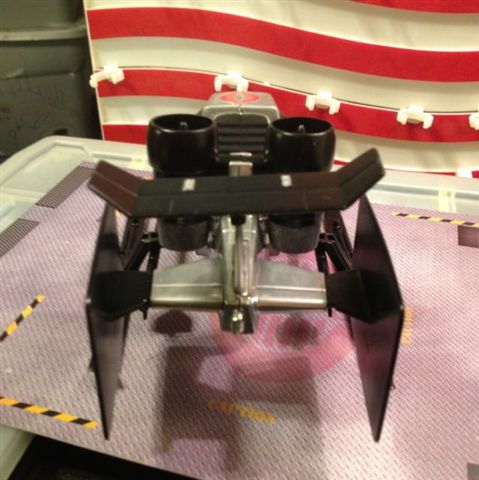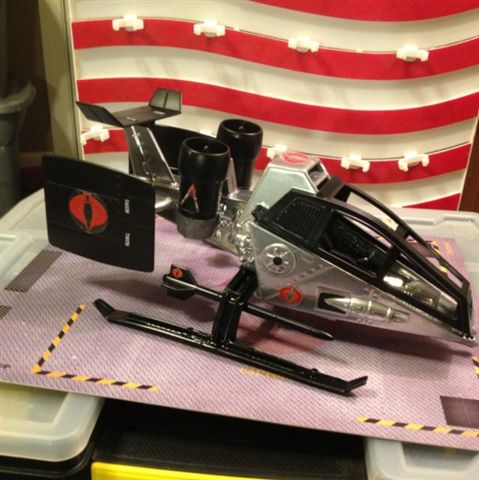 I really like the chrome Hate HISS and other custom Hate vehicles I've seen so I decided to build one of my own. The body is an actual Sky Patrol unit that I intended to use stock after I removed the decals. Unfortunately, the finish was damaged during the process so I decided to try automotive chrome paint. It's not perfect chrome but it does give a good likeness. The wings, cockpit, etc. are taken from vintage Skyhawks and were painted black. Custom decals were then applied & a matte topcoat to dull them down.