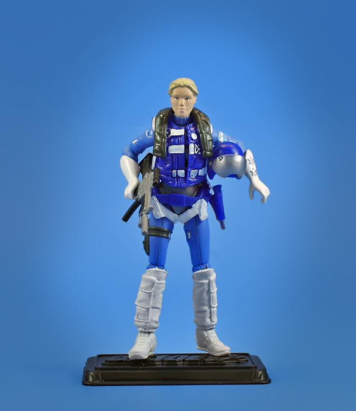 Glenda is yet another update to an Argentinian figure, though this one hardly counts as a full fledged custom. Hasbro actually made an official release of Scarlett in these color. I gave her head a quick paintjob, swapped her feet to match the original figure's white boots, and added Argentina's flag to her shoulder with a water-slide decal. Nothing fancy, but she helps round out my Argentina team.