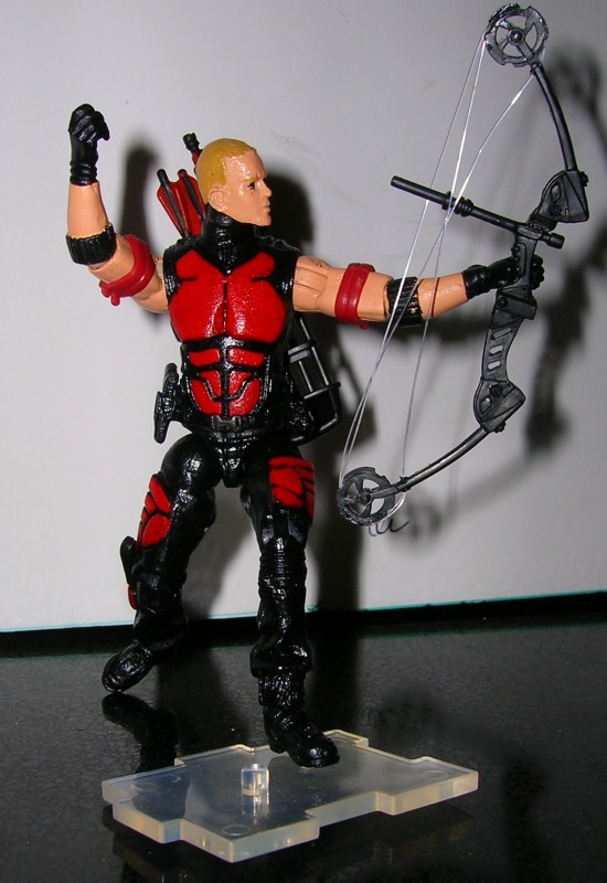 I based this version of Hawkeye on the Ultimate version, that is the reason why he is wearing a red costume and to be honest that is my preferred version. I created these avengers around the reactive armour of the ROC figures as I felt it looked like something the Avengers might wear in a live action film.