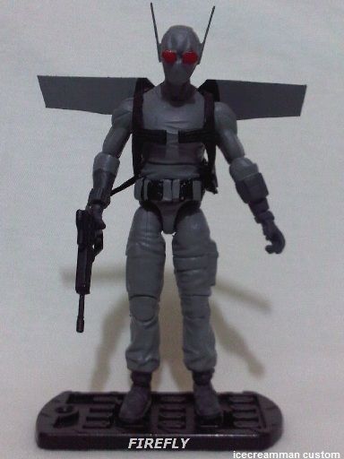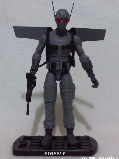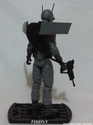 Bought a ROC Jet Storm Cycle to customize it into a Ghost Rider Motorcycle. Now what should I do with the Snake Eyes figure that came with it? Did some research. My prospects were Red Hood, The Ray and Firefly. Chose the latter because it is the closest base figure to the character. Had to add the wings to the back pack of course and cut-out Stone's rifle to make it look like a torch. The hose was made from Deep Six's air tube. :)