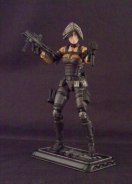 I got this figure in really bad shape, and decided to fix her up. I really like this figure just as she is, and only added a pistol holster to her right leg. It is truly rare for me to look at any production figure and like it like this and I felt she was worth the time it took to clean up her paint apps (which were terrible). I went over the figure giving her a full re-paint finishing her then with my usual mixes of washes for added detailing.