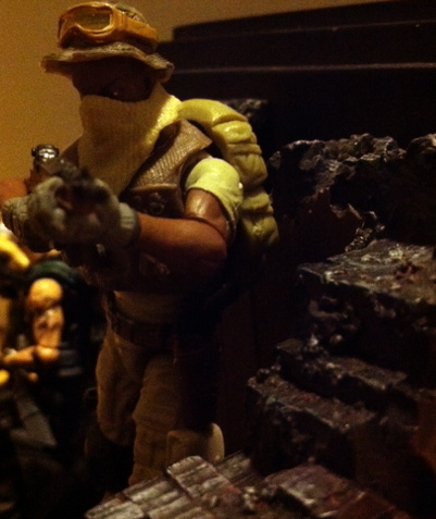 Bankshot carries himself with a cool, quiet confidence with just a hint of swagger, backed up by countless hours on the shooting ranges and in the kill house, not to mention constant practical experience in any number of global hotspots. In the thick of battle, he prefers to use the iron sights on his old 7.62mm M14, Tess, over newer rifles with newer scopes and sights. He never seems to miss with Tess, even at seemingly impossible ranges and her stopping power trumps the 5.56mm AR-style rifles fielded by most of his teammates