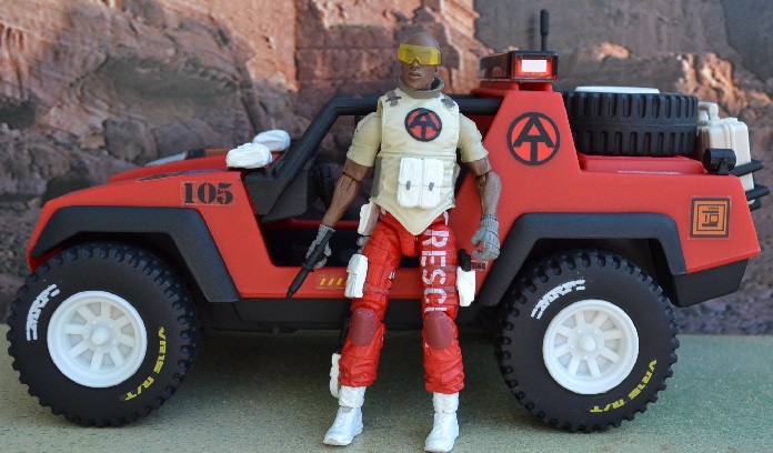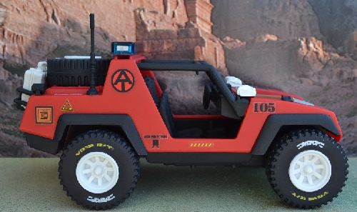This is one of those Funskool Vamps that I picked up on the cheap and had no idea what to do with until I saw drbindy do a red 6 wheel thing for his AT project. So, hat tip drbindy. It was pretty easy. Just cleaned it up, did some decal work and painting, glued on some interesting details and here it is. It's a nice little vehicle for my modern AT member I call Medic.