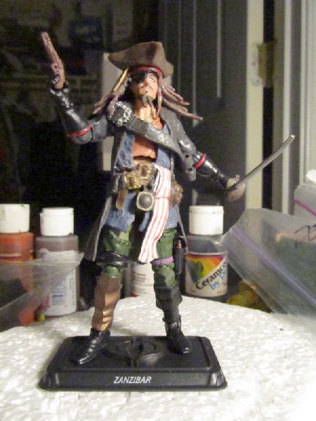 Before Hasbro announced their Dreadnok 7-pack I had plans to do this custom and had assembled most of the parts before then too. I thought their version was fine for the most part but just didn't look much like Zanzibar from the vintage line or, in my opinion, better than the custom I was planning. After getting the set, the one thing I did like better than what I was planning were the legs so I decided to use them as is on my custom. It took some work getting the jacket on and I ended up having to make it a permanent item. The only way to get it off is to disassemble the figure. It limits the mobility of the figure but in this case I chose form over function and I'm happy with it.