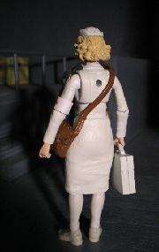 Greenstuff nurse hat, spider woman legs, Matt Trakker shoes, ROC Scarlett torso and arms, dress and head from the Nicole Kidman figure, medical case and satchel from chuckles. Printed bandage.