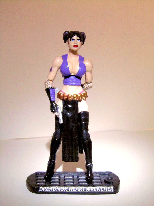 I don't really know anything about Heartwrencher as a character but I'm always looking to fill out my Dreadnok ranks plus I liked the idea of a Dreadnok mechanic who was a woman who had no problem flaunting her "womanly wares" but also knew how to take care of herself. That head and torso probably are meant for other characters but I liked the idea of using them hear since they seemed to work with my idea of the character.
