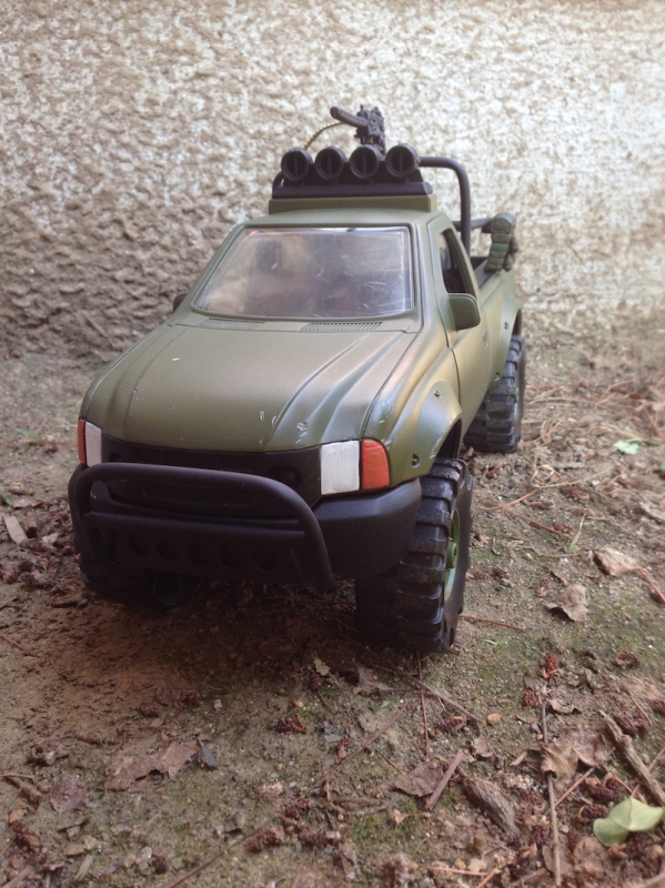 I bought this truck 2 years back and always knew what I was going to do with it. I painted it up about 2 months back and it sat unfinished. I knew I wanted roll bars on the back but had no idea where to get them. Then, I found some tube plastic at my local hobby store and bought it figuring I'd give it a shot. I hand bent the tubing then pieced it together and painted it. I geared it up and called it complete. I may go back and add LEDs but for now I'm really happy.