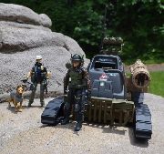 Part of this project was to emulate Hasbro's past of doing mail away vehicles. In deciding which vehicles to use, it was important to try and keep things fresh. When looking through the toy history we asked which vehicles that we have not seen reissued would we want to see again? One vehicle stood out as unique and perhaps forgotten, the Patriot. It was decided to raise this vehicle from the dead, but not as the Patriot, it would instead be renamed Slugger, as an homage to one of the earliest GI Joe toys and it would be paired with a modern version of Thunder to make it complete.