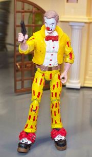 Well... Why not? At one time, I had a number of Daniel Craig heads, and those ridiculous shoes. Seemed like the right thing to do. So I pulled up some reference pics from Octopussy when he appeared as a clown and found some parts that worked. The paint is crazy and I don't recommend that much yellow on anything ever. It was beyond my skill to make a plaid pattern on his outfit, so I just made up something that felt like it worked.