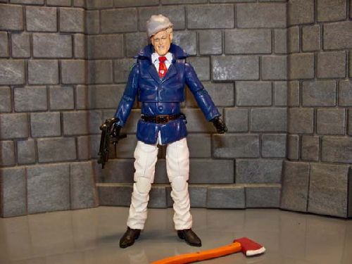 This was my first redo of a 007 custom, because the first was terrible. Rise of Cobra really opened up the world of modern parts and shined a light on how crappy the 25A parts were in a lot of cases. This is now still, one of my all time favorite customs. Not the best likeness, but it captures Christopher Walken's crazy charisma pretty well. And hes very playable, which I like. A lot. The axe from the final scene of A View To A Kill, and the uzi he used to murder his workers finish it off.