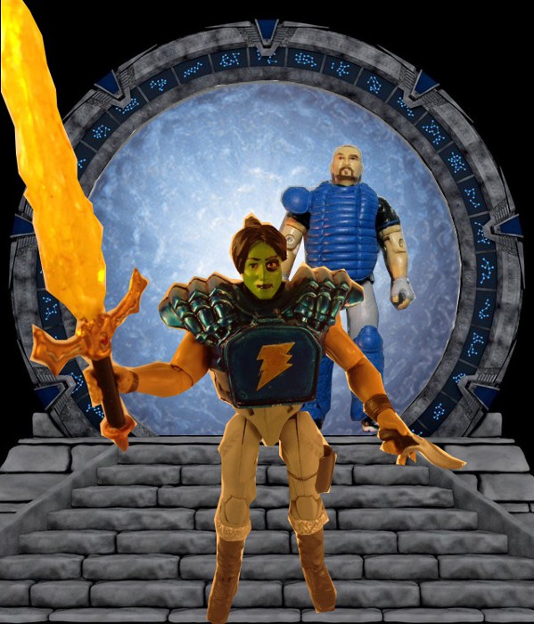 I've been wanting to make that lightening sword with the extending lightening rod hilt for a long time now but never had the right custom in mind to use it. The East Coast Custom Con and daremo's Heroic Quest styled Kumite gave me that opportunity. A very short opportunity. I'm no fantasy guy and my tongue-in-cheek He-Man ripoff contestant was no match in comparison to the other entries of Darkwynter, StarWarsGeek, or Fogger. I do want to point out that his face paint is based on The Baseball Furies from the movie The Warriors. I tried to translate the catcher's gear into a fantasy setting.