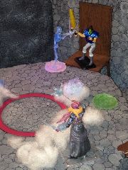 After that Kumite loss, the fight scene just wasn't the same. He started learning different forms of martial arts including their weapons in preparation for the next Kumite. Then he waited. And waited. Finally frustrated he went to an amusement park where he picked a fight with a group of bikers. They threw him in a fountain. A fountain that was really a portal to the Denizens of the Dungeon Kumite. The Fates were able to offer him a magical lightening sword to help him to victory.